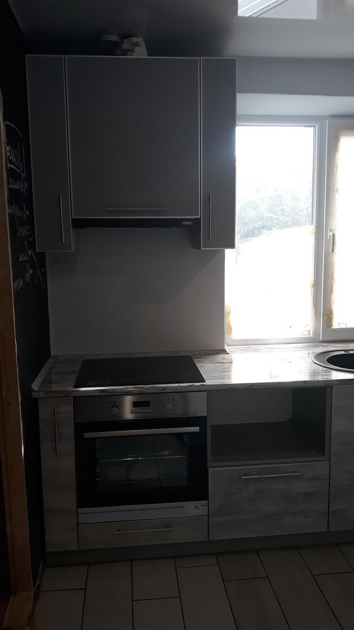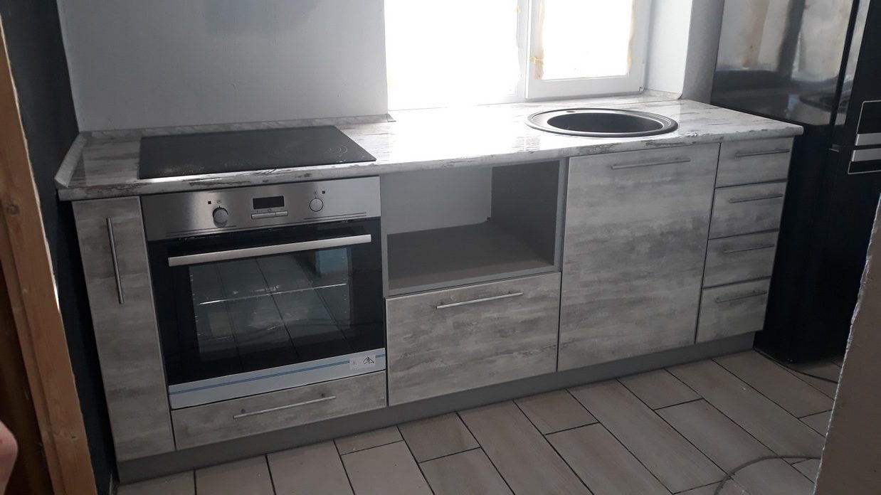 фасады ЛДСП в алюминиевом профиле, столешница пластик