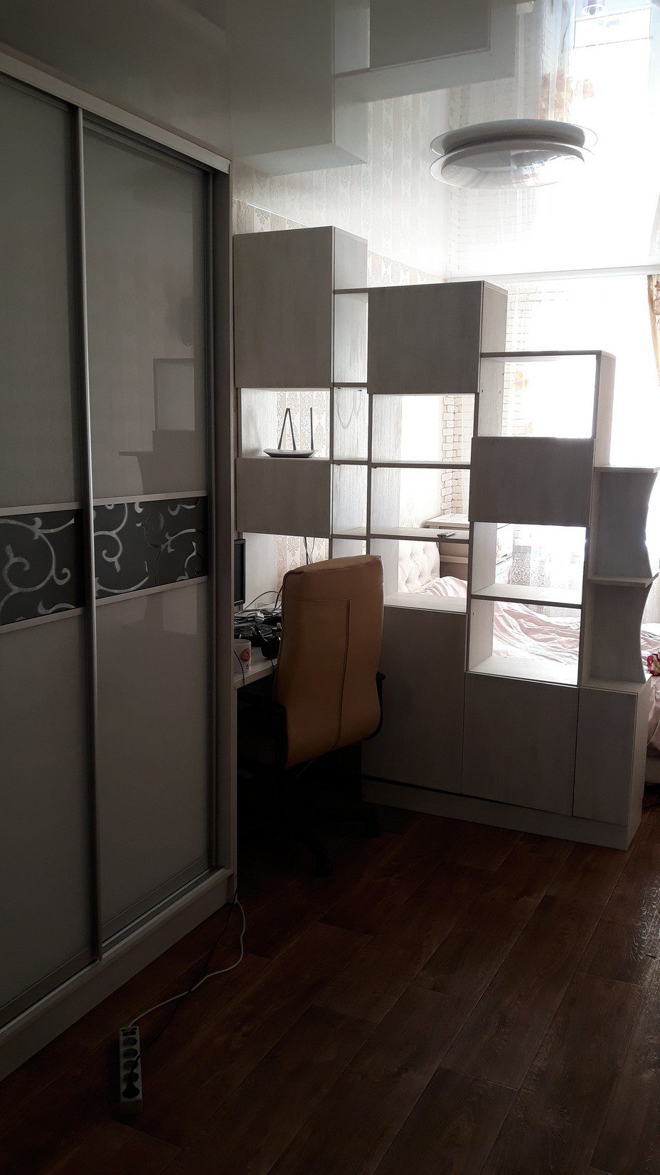 ЛДСП дерево вибілене, фурнітура ДТС, скло опті лакобель, дзеркало графіт з піскоструйним малюнком