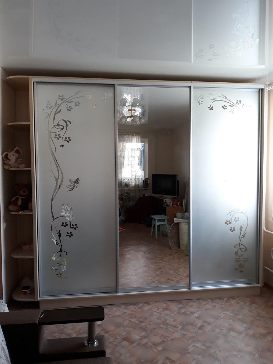 фасады профиль серебро, наполнение зеркало, зеркало с пескоструйным рисунком